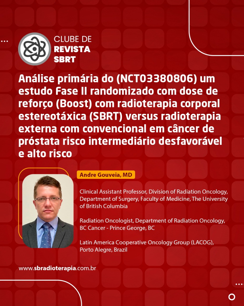 Análise primária do (NCT03380806) um estudo fase II randomizado com dose de reforço (Boost) com radioterapia corporal estereotáxica (SBRT) versus radioterapia externa com convencional em câncer de próstata risco intermediário desfavorável e alto risco