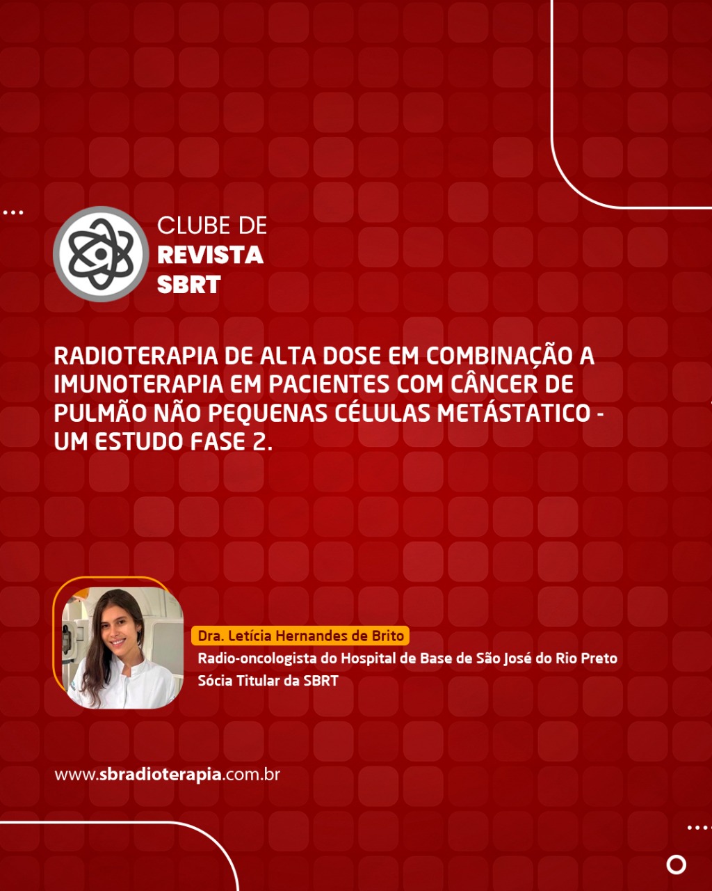 O advento da imunoterapia com inibidores de checkpoint (ICI) transformou o tratamento do câncer de pulmão não pequenas células (NSCLC), especialmente no cenário metastático, com resultados promissores na resposta objetiva e no tempo de duração de resposta. No entanto, a taxa de resposta global com estas drogas é de aproximadamente 20%. A radioterapia (RT) de alta dose foi proposta como uma maneira de melhorar a resposta ao ICI, abordando tumores macroscópicos e potencialmente promovendo efeito sistêmico (efeito abscopal), o que poderia beneficiar focos tumorais fora do campo irradiado.