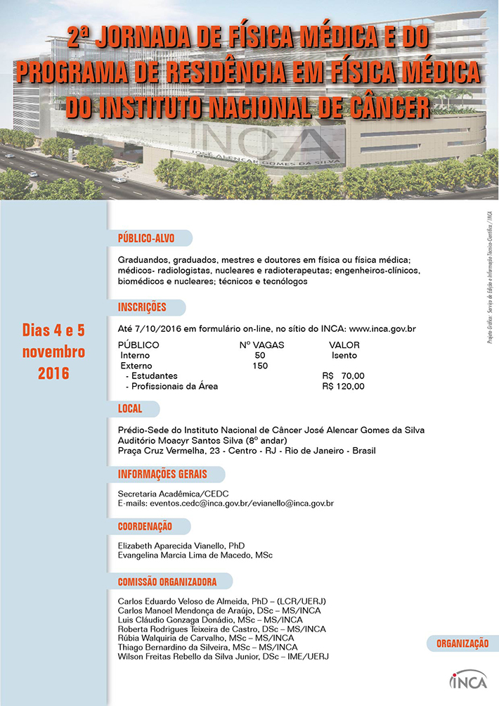 Informações: www.inscricaoonline.inca.gov.br/ie_eventos/eventos
