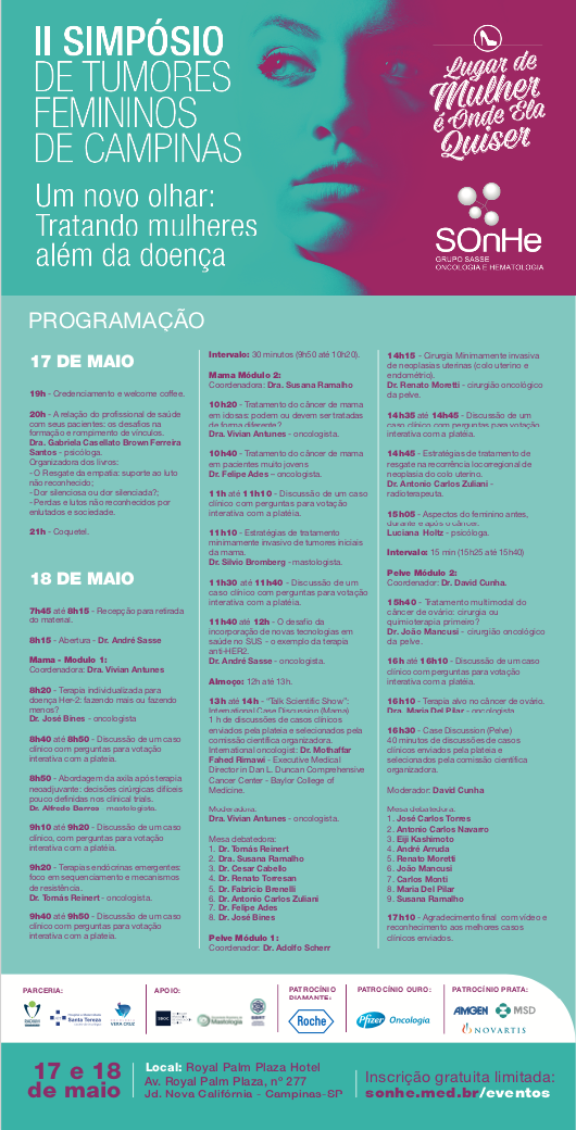 Data: 17 e 18 de Maio Local: Royal Palm Plaza – Campinas – SP Inscrições: www.sonhe.med.br/eventos/
