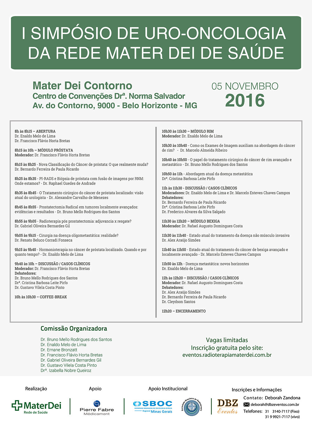 Informações: www.eventos.radioterapiamaterdei.com.br/evento/uro-oncologia/