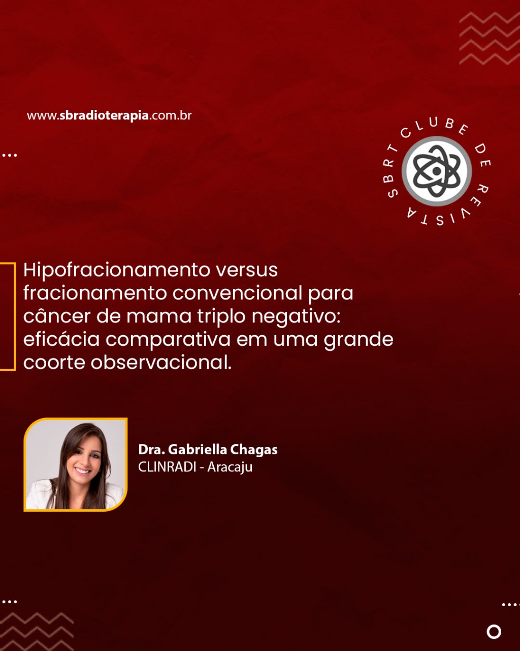 Sabe-se que o hipofracionamento moderado em mama, além de mais rápido, é menos oneroso. Em 3 semanas (40-42,5 Gy em 15-16 frações), entrega-se a dose terapêutica que costumávamos fazer em 5 semanas com o fracionamento convencional (50-50,4 Gy em 25-28 frações). Ensaios randomizados (Canadá e Reino Unido) já deixaram bem estabelecidos a eficácia e segurança do uso do hipofracionamento em estadios iniciais. No entanto, seria possível extrapolarmos esse dado para histologias mais agressivas como triplo negativo? Esse é um questionamento frequente em nossa prática. O presente estudo, por sua vez, após análise de um banco de dados prospectivos e multicêntrico, busca responder alguns desses pontos. Nele, comparou-se 538 pacientes com câncer de mama invasivo triplo negativo e linfonodo negativo, as quais tinham indicação de radioterapia de toda a mama – sem drenagens (307 usaram fracionamento convencional e 231 hipofracionamento moderado). Após 5 anos de seguimento, observou-se que não houve diferença estatística significativa quando avaliadas as variantes: ausência de recorrência local 93,6% x 94,4% (p = 0,89); sobrevida livre de recorrência 87,8% x 88,4% (p = 0,95) e sobrevida global 96,6% x 93,4% (p = 0,28). Sendo assim, o uso do hipofracionamento em histologias agressivas também é seguro. O racional para esse dado seria o conceito de BED entregue, o qual é semelhante entre os grupos avaliados. Apesar dos resultados apresentados, a ASTRO ainda enfatiza que há limitações nas evidências atuais, favorecendo novos estudos.