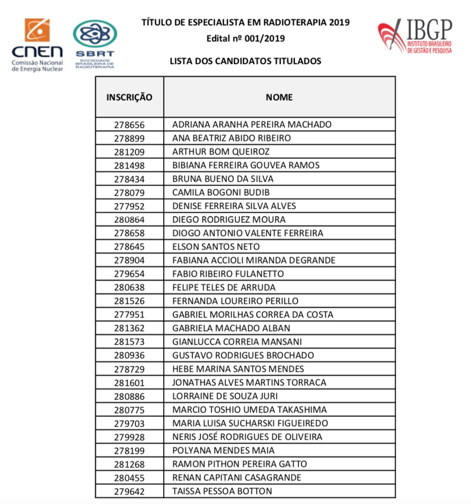 Mais uma vez Parabéns aos aprovados e bem-vindos a SBRT, agora como Sócios Titulares. Vamos fazer nossa especialidade ainda mais forte.