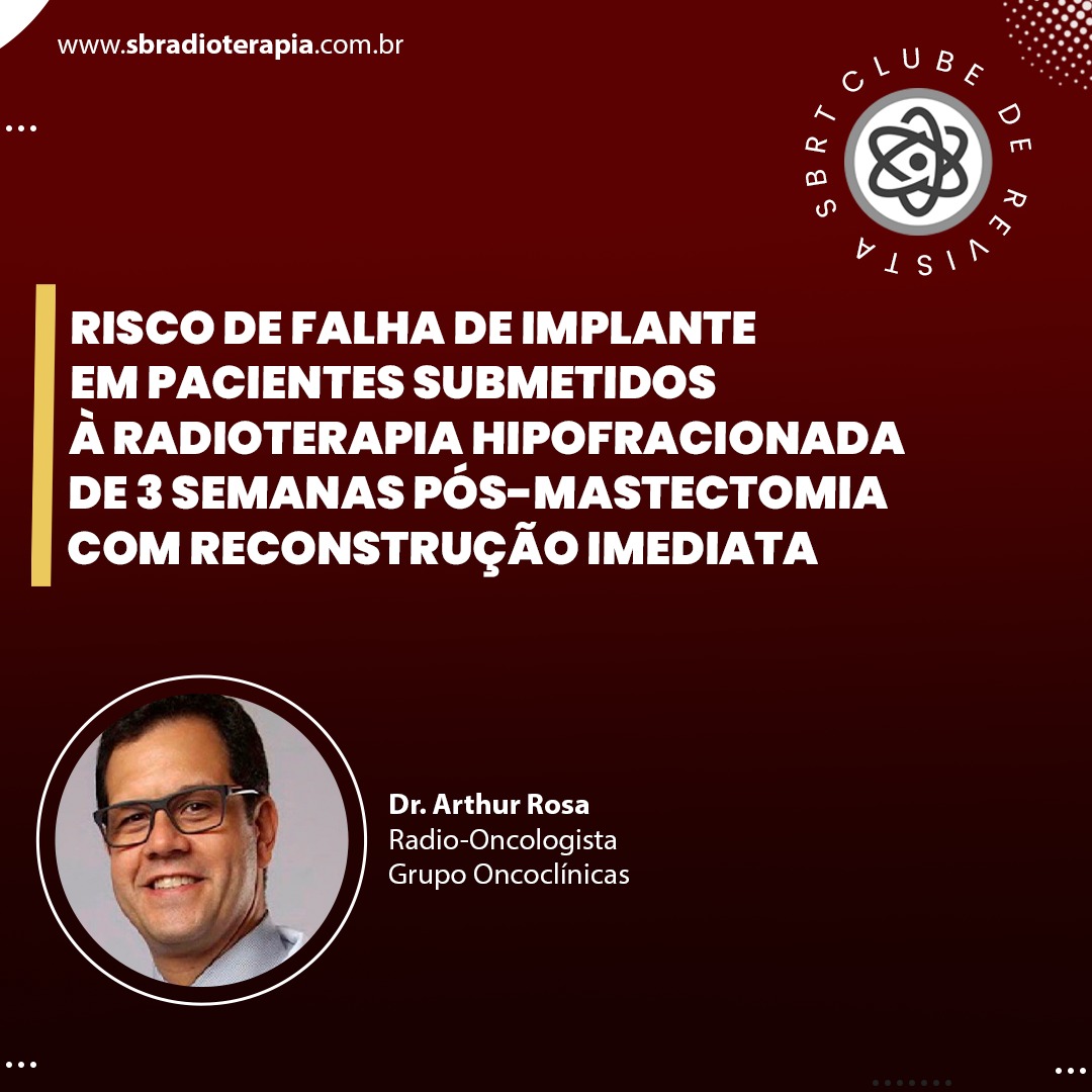 O hipofracionamento moderado no câncer de mama é uma realidade consolidada da radioterapia contemporânea. O seu impacto vem sendo estudado de forma crescente em subgrupos específicos. O grupo do Instituto Europeu de Oncologia de Milão, na Itália, publicou um estudo avaliando o hipofracionamento moderado na reconstrução imediata em 107 pacientes, sendo 45 em cirurgias de etapa única com prótese (DTI) e 62 em procedimentos com duas etapas usando expansor/implante (TE/I). Os pacientes foram irradiados usando Tomotherapy IMRT, com dose 40.05Gy em 15 frações, e comparados com uma coorte de pacientes reconstruídos sem RT durante o mesmo período. O endpoint primário foi falha na reconstrução, com necessidade de intervenção cirúrgica maior (MaRS), tendo um seguimento mediano de 4.2 anos. No grupo de TE/I a taxa de MaRS foi de 12.9% comparada a 1.6% em não irradiados (p=0.015). Ja no grupo DTI a taxa foi de 6.7% comparado a 2.2% nos não irradiados (p=0.35). A taxa global de MaRS foi de 10.3% em pacientes irradiados. Foi também avaliada a incidência de intervenções cirúrgicas menores, ou revisionais, que ficaram em torno de 30% no grupo DTI e na faixa de 10% no grupo de TE/I, sem diferença estatística com os casos não irradiados.
